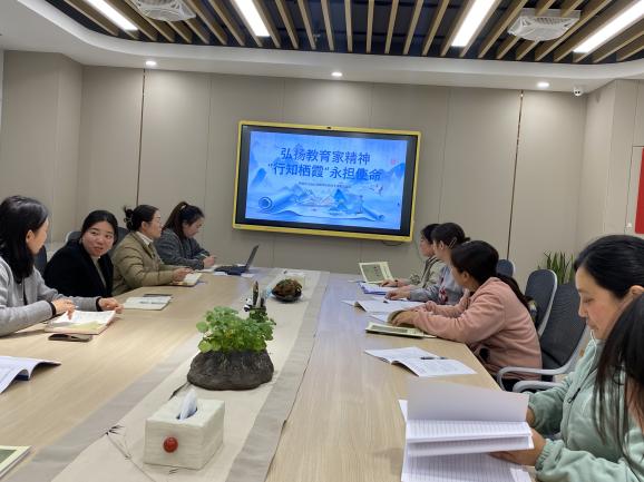 首先,全体教职工共同观看了由稽倩园长分享的《弘扬教育家精神 “行知栖霞”勇担使命》师德师风学习视频。视频中,稽园长向大家介绍了习近平总书记以敏锐的眼光和卓越的智慧,从理想信念、道德情操、育人智慧、躬耕态度、仁爱之心、弘道追求六方面概括阐述中国特有的教育家精神丰富内涵。随后,稽园长分享了《教育家精神之旅》一书中陶行知先生篇关于“捧着一颗心来,不带半根草去。”的精神底蕴。大家聆听了陶行知先生的教育理念和奋斗历程,感受到了陶行知先生坚定的教育信仰和无私奉献的精神。嵇园长通过一个个鲜活的教育实例,生动地展现了陶行知先生精神在现代教育中的生命力。