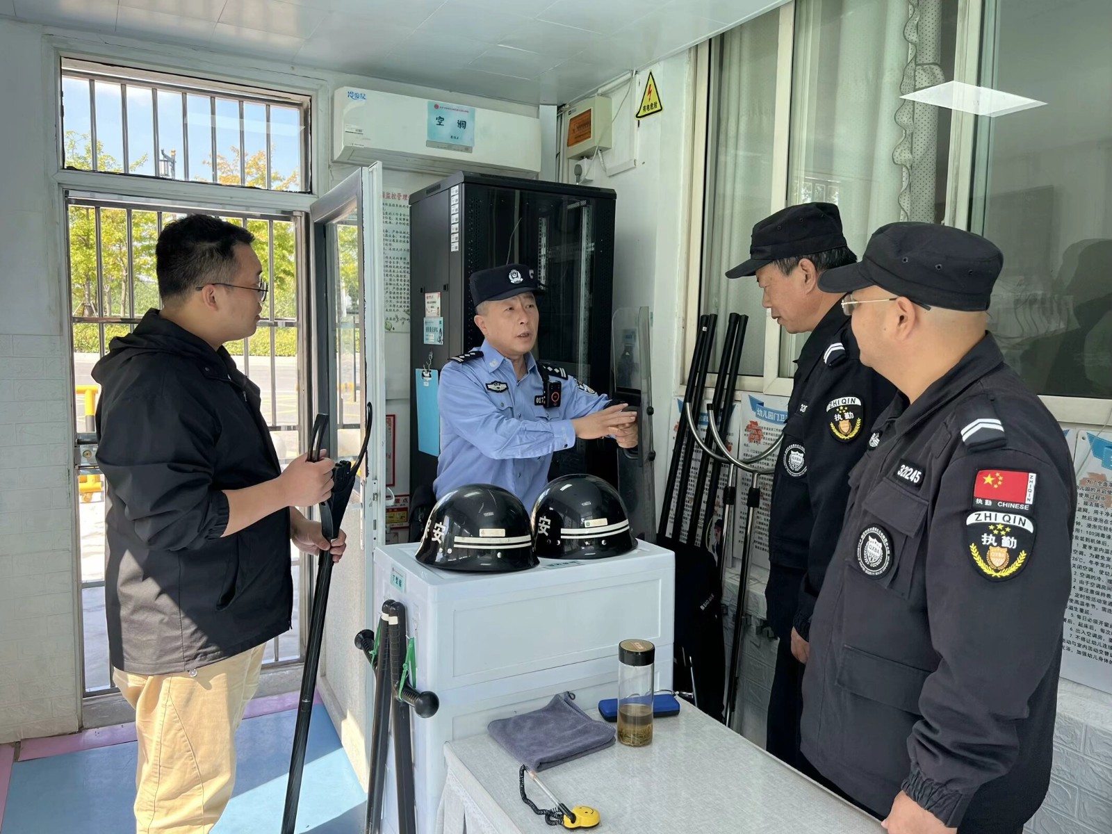 栖霞派出所王刚警官前期对幼儿园安保人员进行了培训,详细讲解了钢叉、盾牌、警棍等器械装备的使用方法。反恐防暴小组在会议室开展了安全演练布置会,后勤主任孙蓉对全体教职员工做了工作部署。