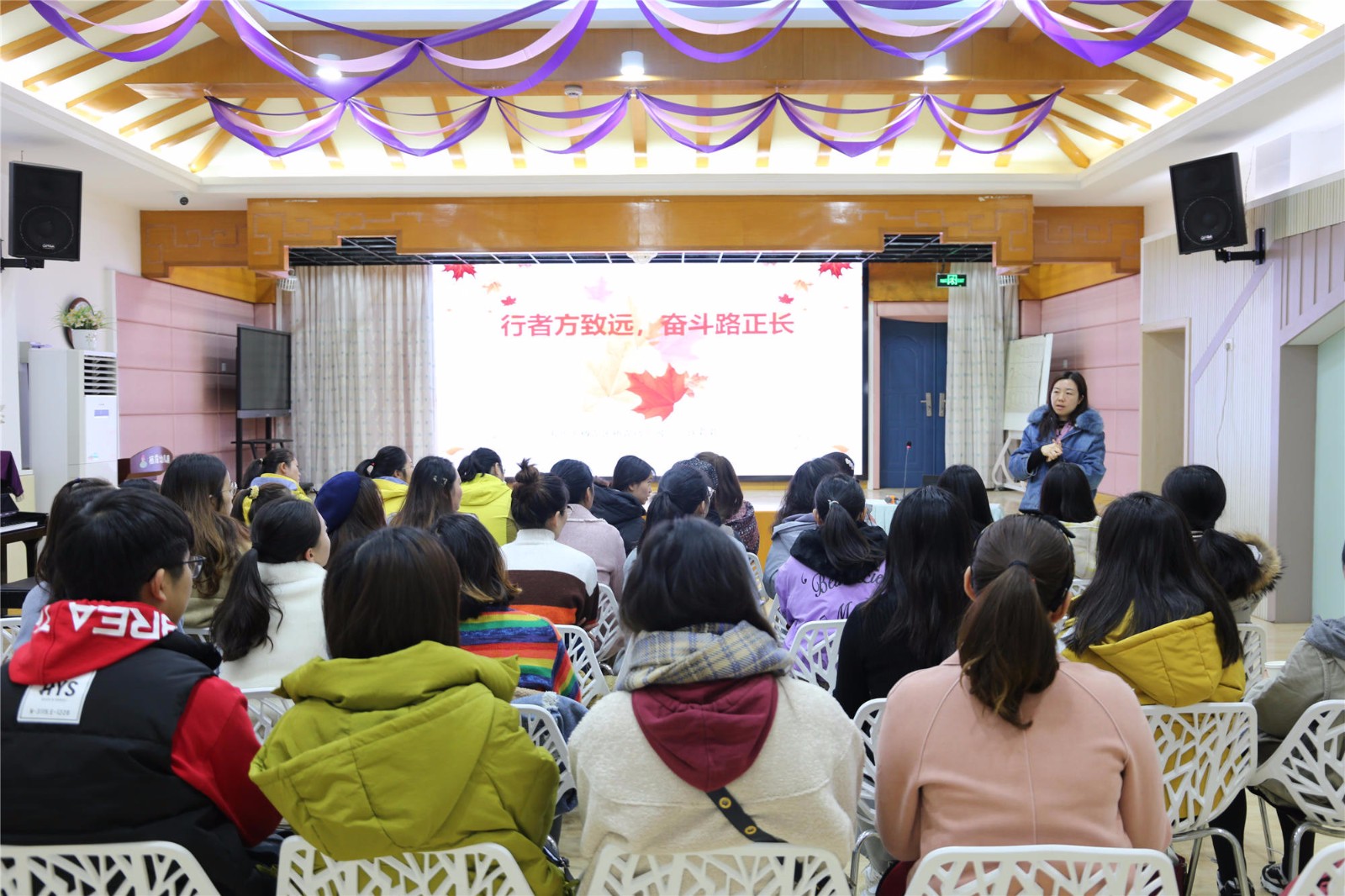 接着,我园党支部书记许莉莉以“行者方致远,奋斗路正长”为主题为新教师们进行了相关专题培训活动。许书记首先向各位新教师全方位地介绍我园园所文化打造,细致讲解我园在“枫香”文化浸润下的枫润课程、枫勤致粹、枫彩先锋、以及枫韵艺术节等园所特色,并结合自身丰富教学经验与专业知识,鼓励新教师们努力成为一名“明师”,谨记“师德为先、幼儿为本、能力为重、终身学习”幼儿教师专业标准。