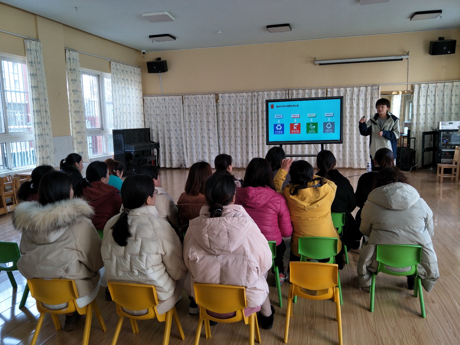 垃圾分类是一个长期的过程,为了提高教师们垃圾分类的能力,让教师们正确的区分各类垃圾,2019年12月12日,栖霞幼儿园红枫园邀请了垃圾分类培训师苏晨为我园的教师们进行了生活垃圾分类知识宣传。