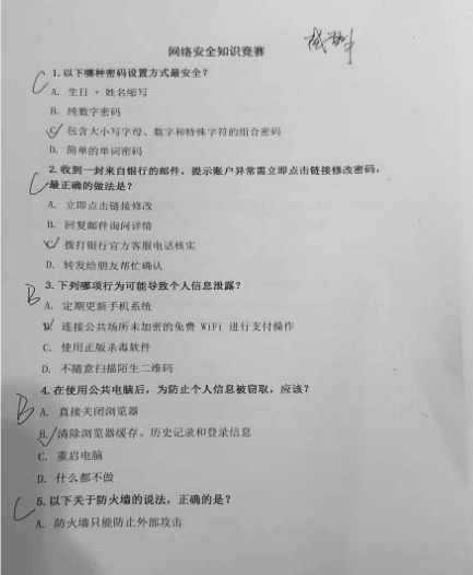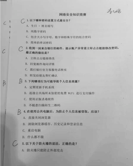 竞赛采用现场笔试形式,题目围绕网络安全常识、技术要点与法律法规设计,全面检验教师知识储备。答题过程中,教师们专注思考、严谨作答,在 “闯关” 式答题里,深入掌握网络安全知识,明晰用网规范,有效提升防范意识与自我保护能力。